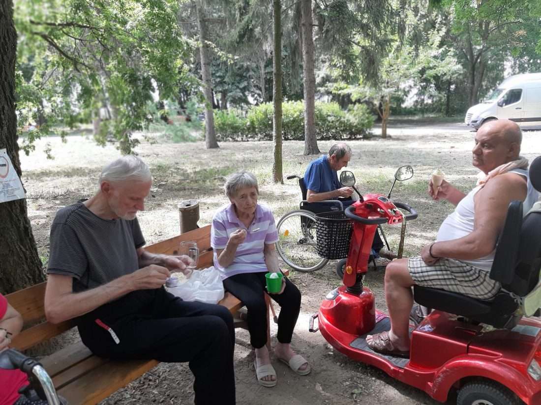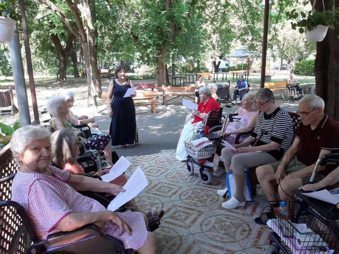 Ma délelőtt, hogy a forróság engedett egy kicsit a szorításából, kint a szabadban tudtunk tornázni, énekelni, zenét hallgatni a Fekvő osztály lakóival.