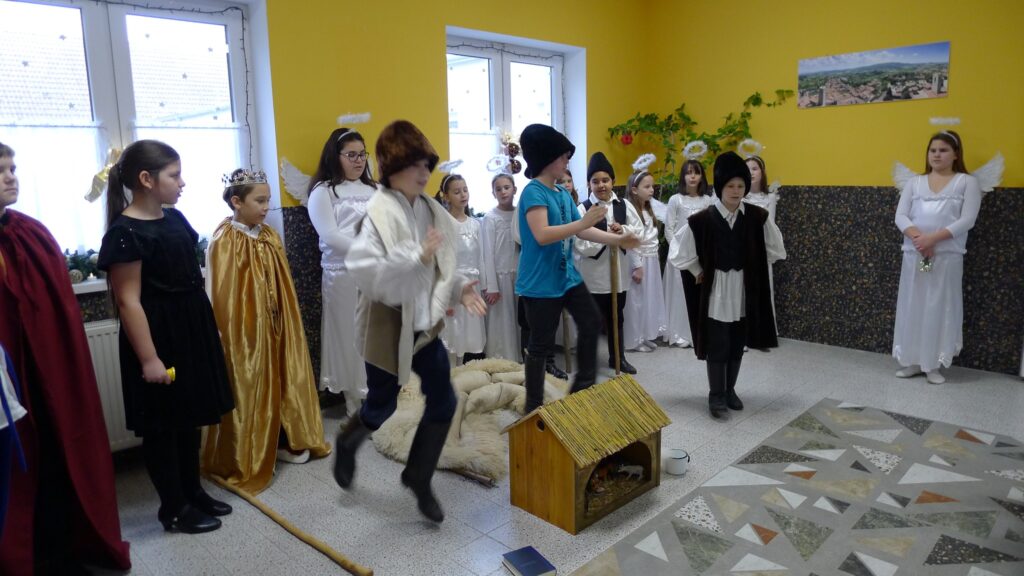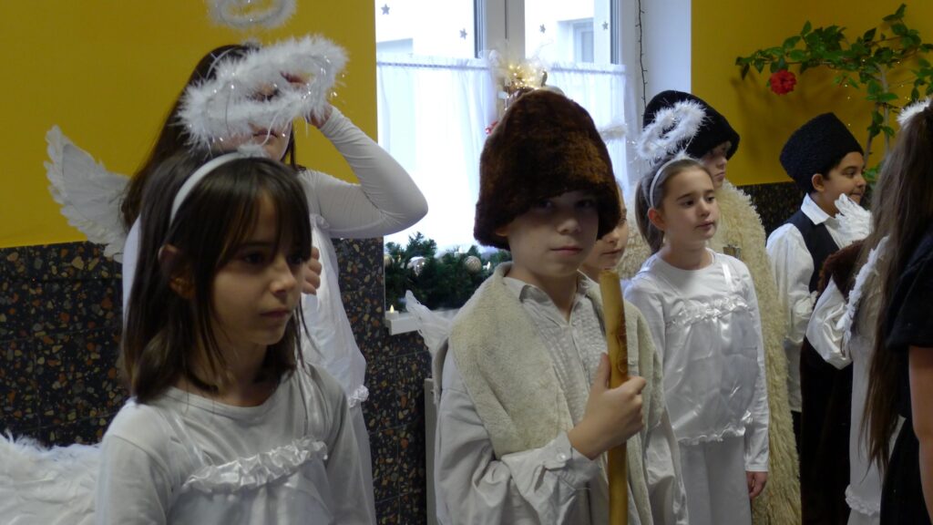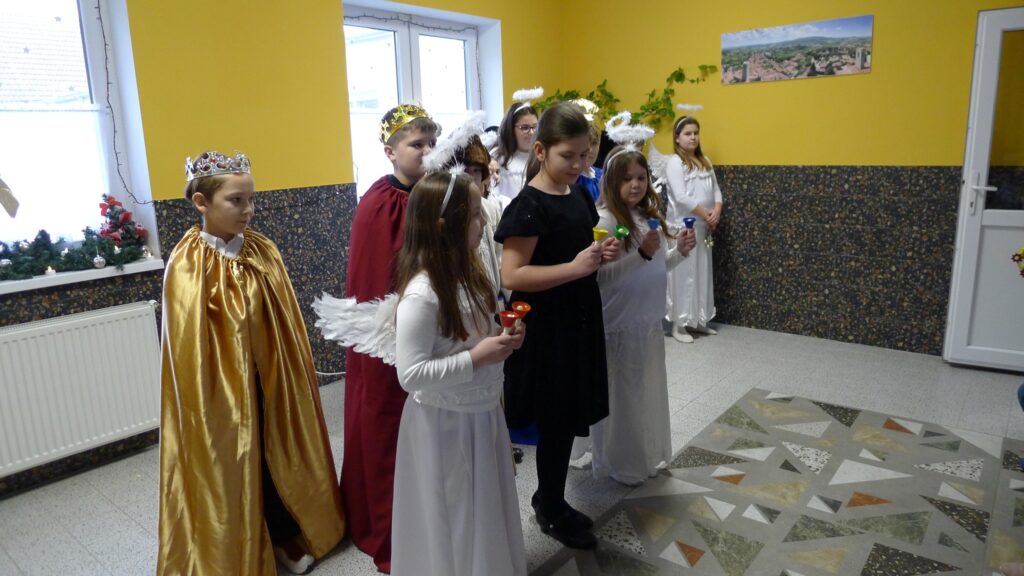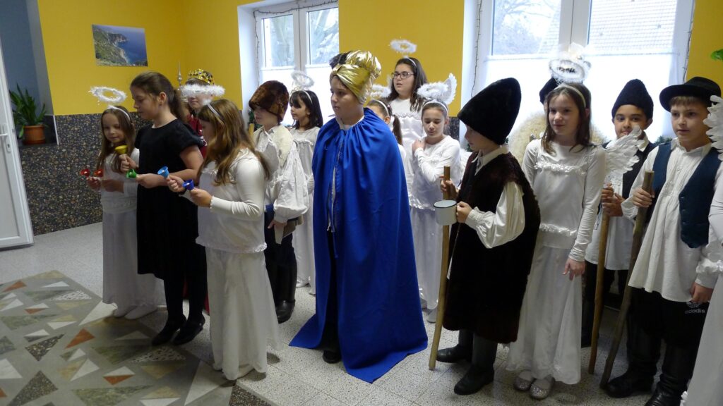 Ma megszálltak minket az angyalok, királyok és pásztorok! Volt csengettyűszó, angyalok éneke, és pásztorok láncos bottal dübörgő tánca. A mikepércsi Hunyadi János Általános Iskola diákjai örvendeztettek meg minket az adventi időszakban betlehemes játékukkal. Köszönjük az élményt!